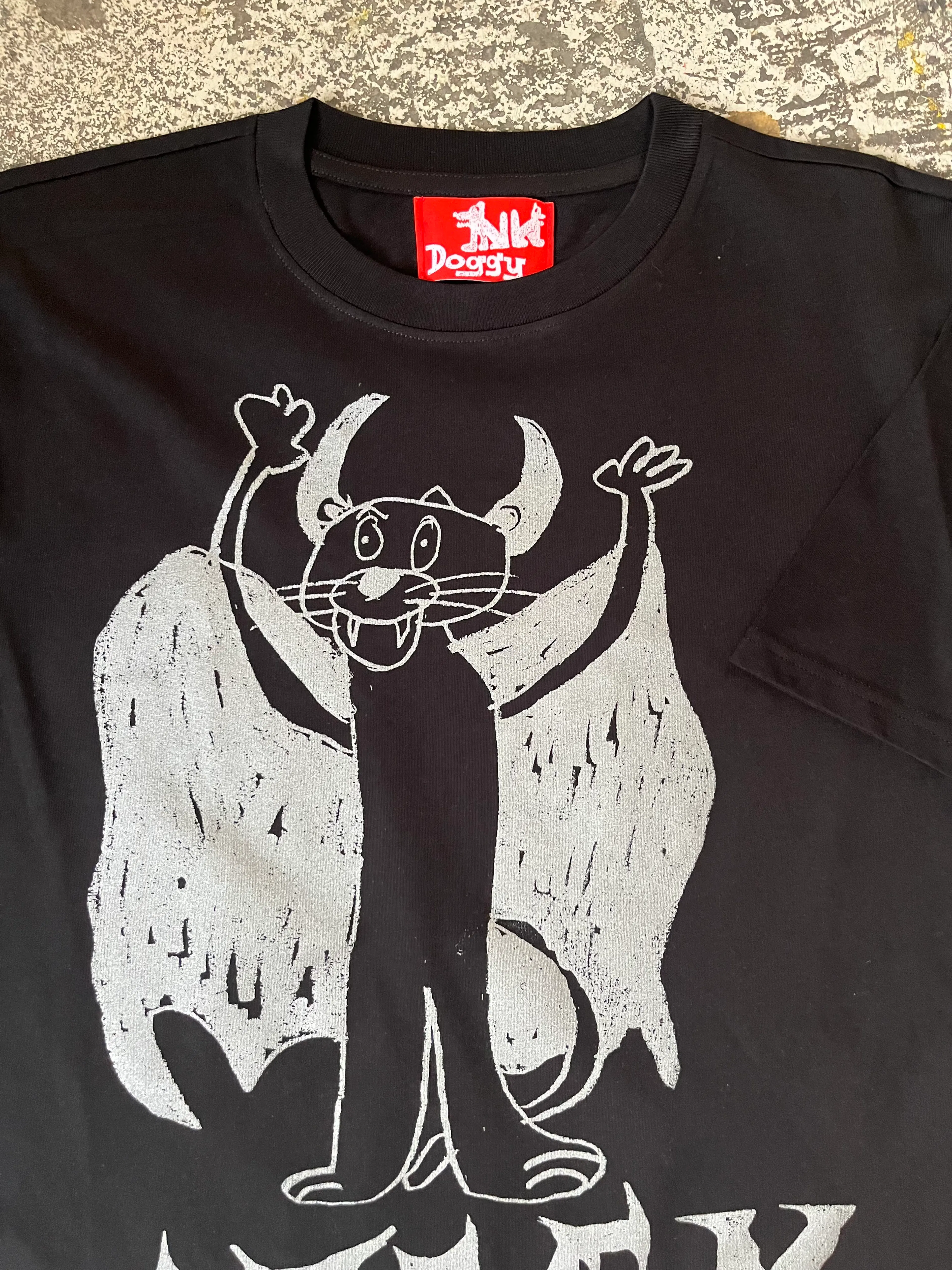 Dracula in relaxed oversized 100% organic cotton t-shirt in black with silver printing π»π¦πΆ Don't get spooked!