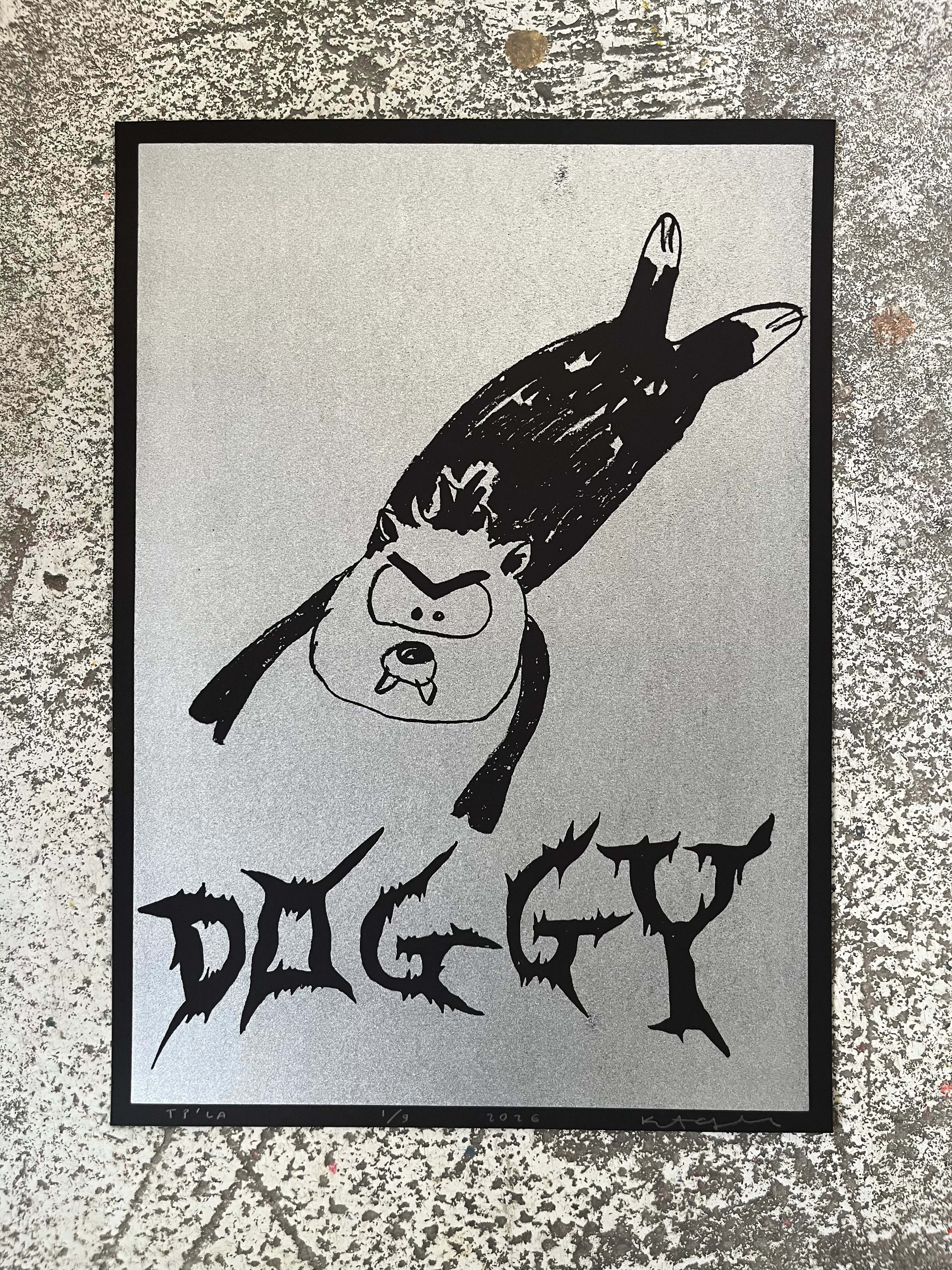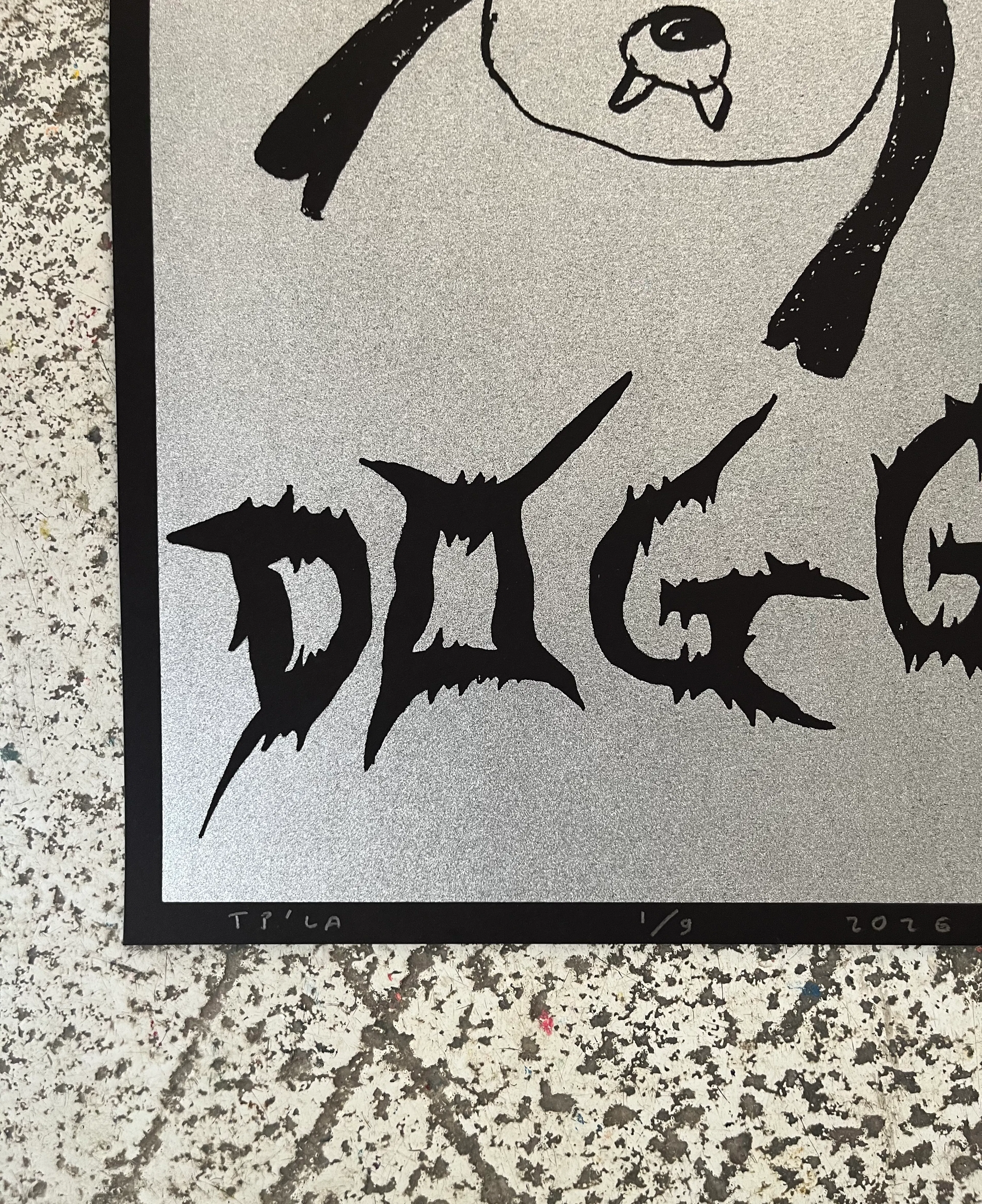 Hi gloss silver print.