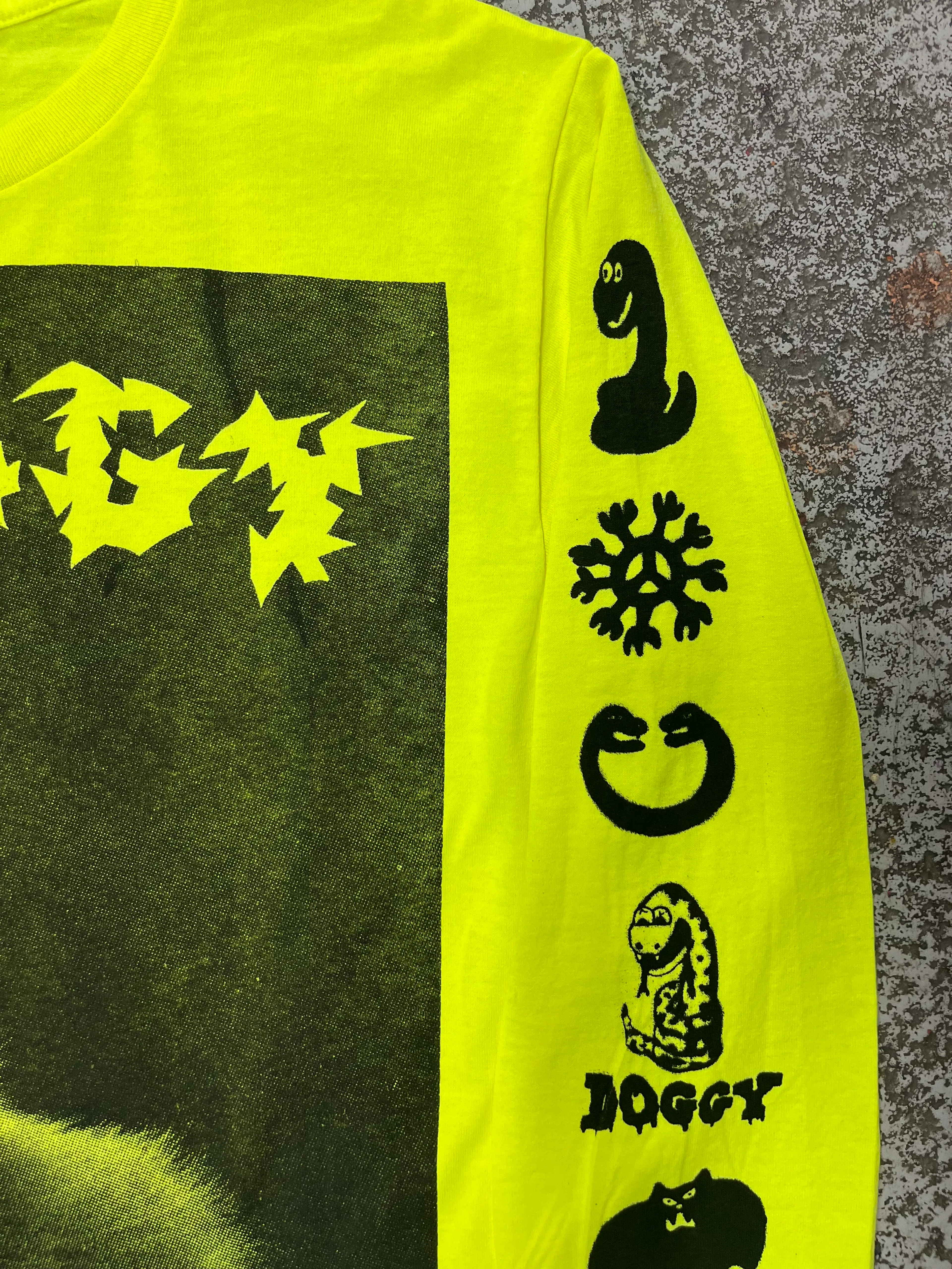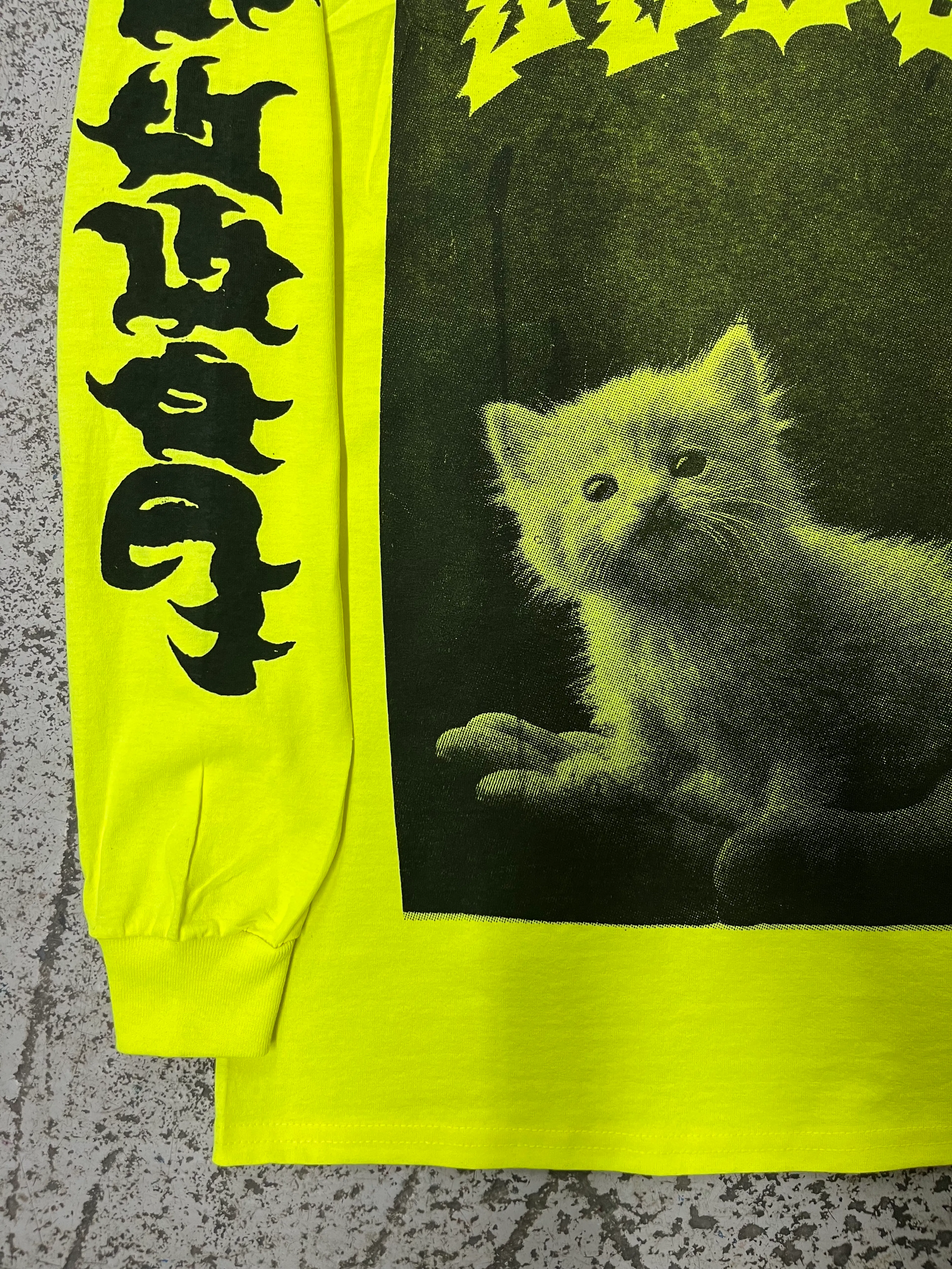 Kitten long sleeve in neon yellow with black print πΆπ±