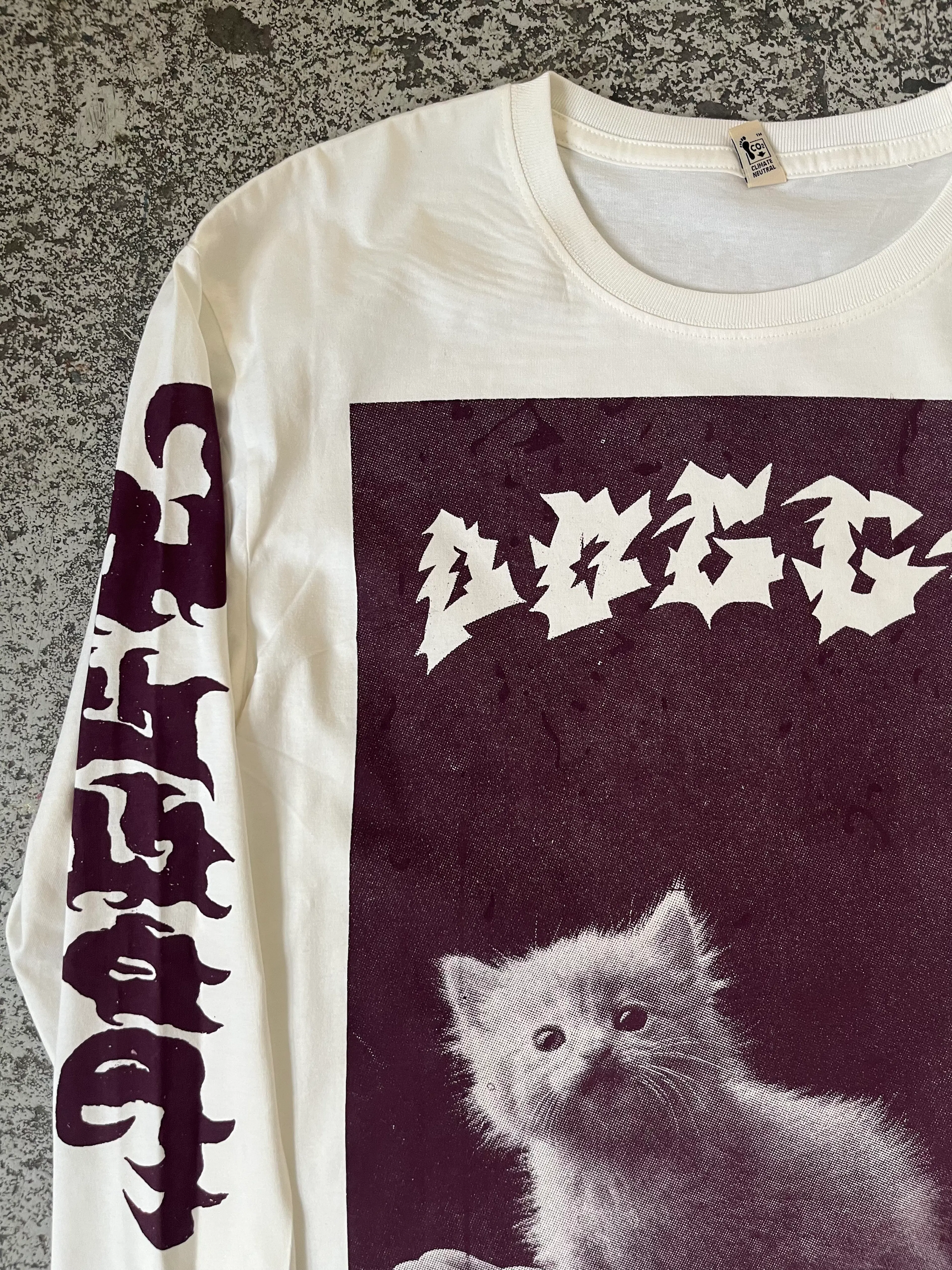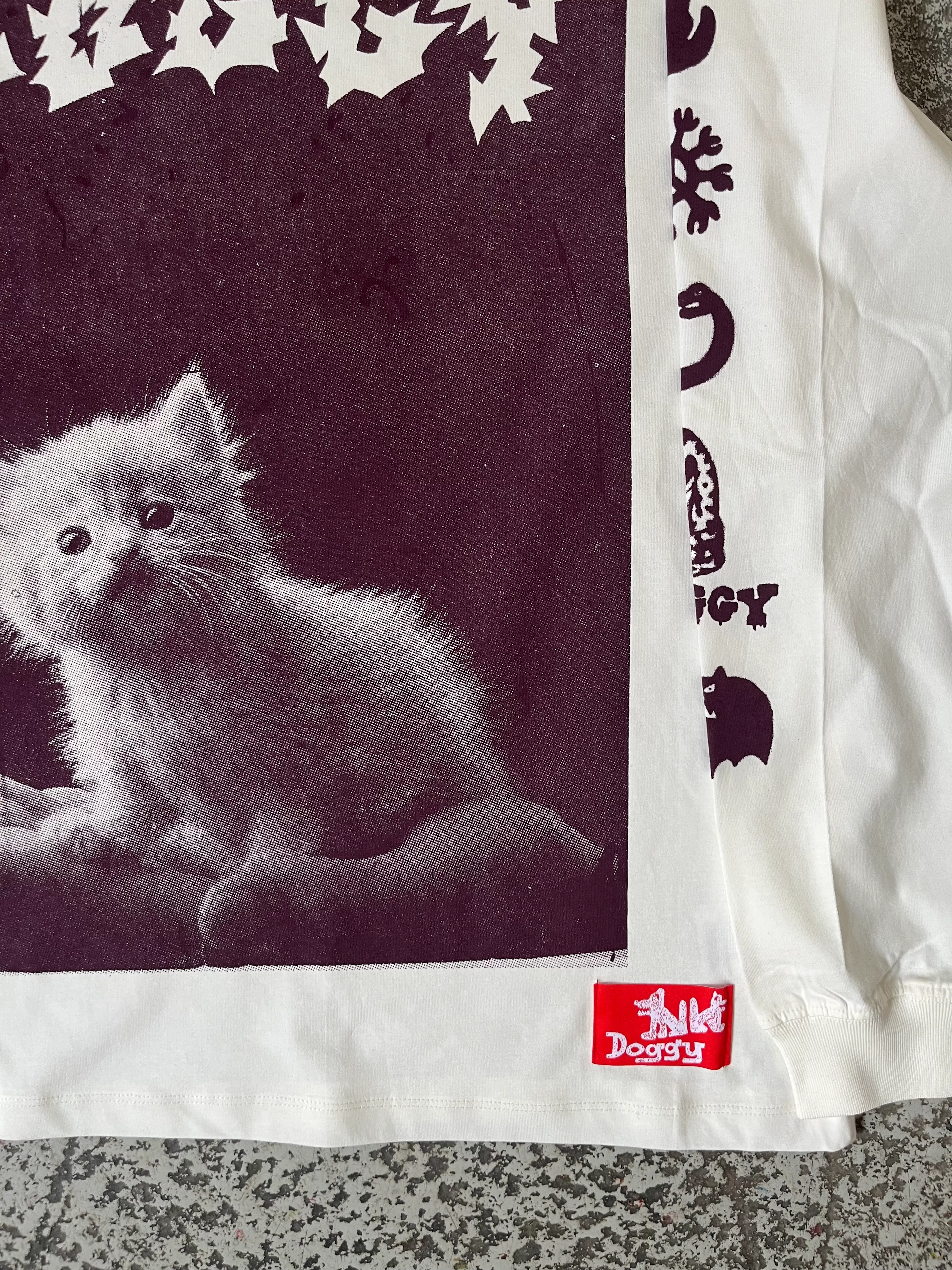 Kitten long sleeve in 100% organic cotton off white with burgundy print πΆπ±